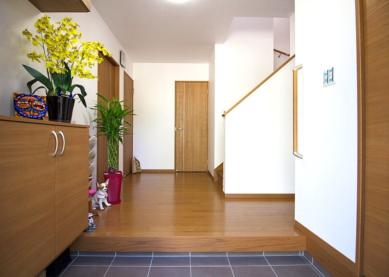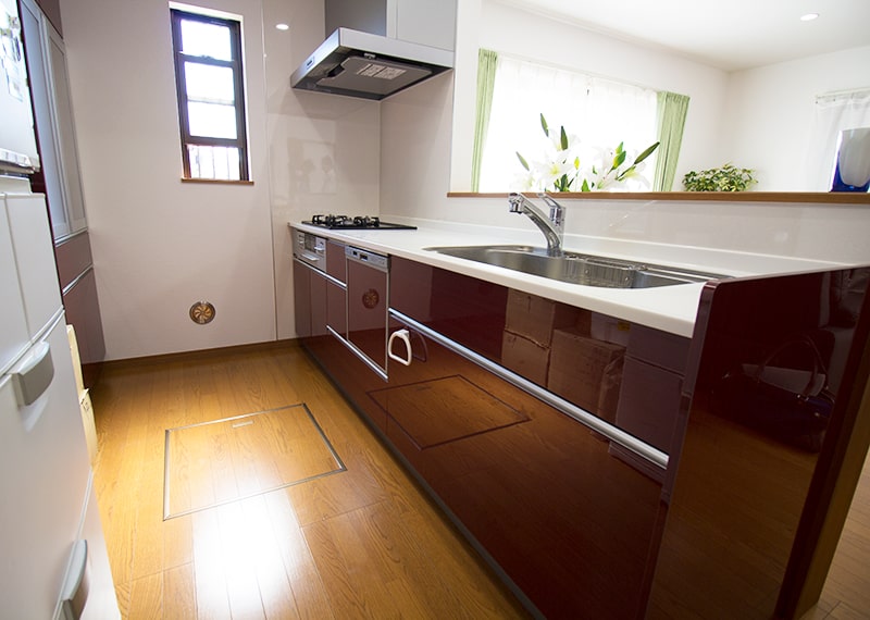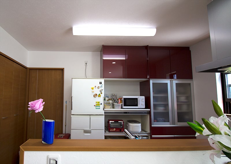 玄関脇のシューズクロークと、お母様と私の選んだ、システムキッチンはレッド色でとてもお気に入りです。嬉しいです。